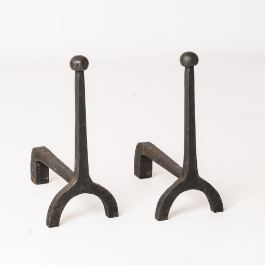 Pair of Modernist Wrought Iron Andirons - France 1960s