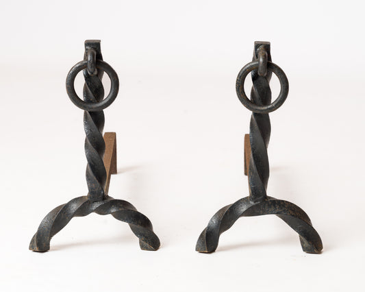 Important Twisted "Torsadé" Wrought Iron Andirons - France 1960s