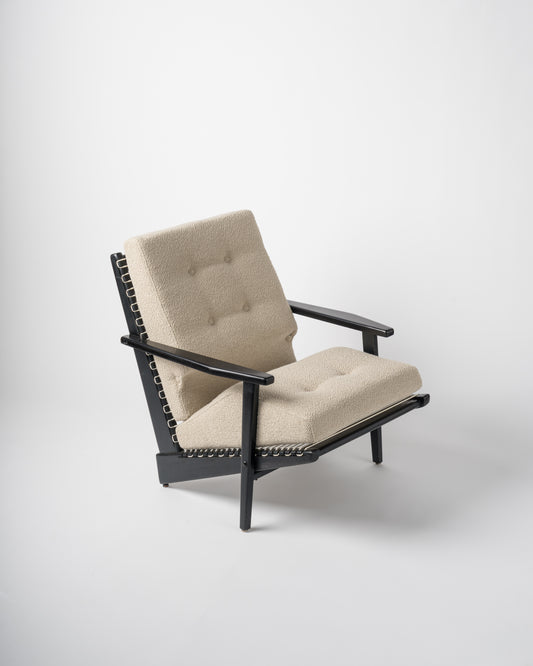 Black Lacquered Teakwood "Kagourou" Armchair by George Tigien, France 1950's