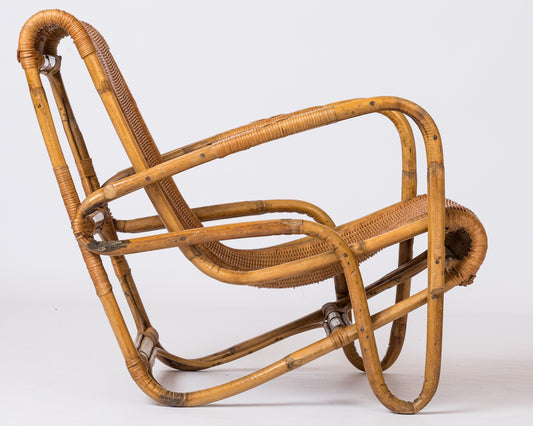 Mid-century Rattan Armchair by Jacques Quinet - France 1960's