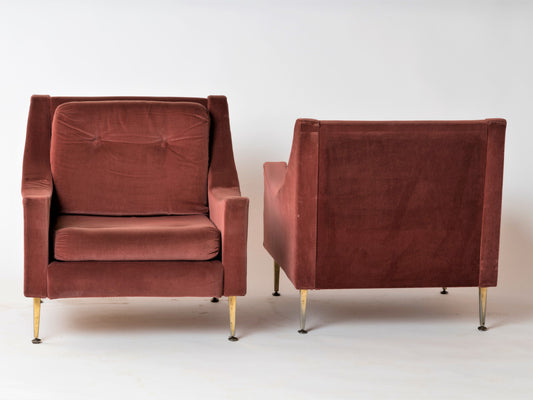 Pair of "Lie De Vin" Velvet & Brass Feet Armchairs by Souplina, France, 1970s