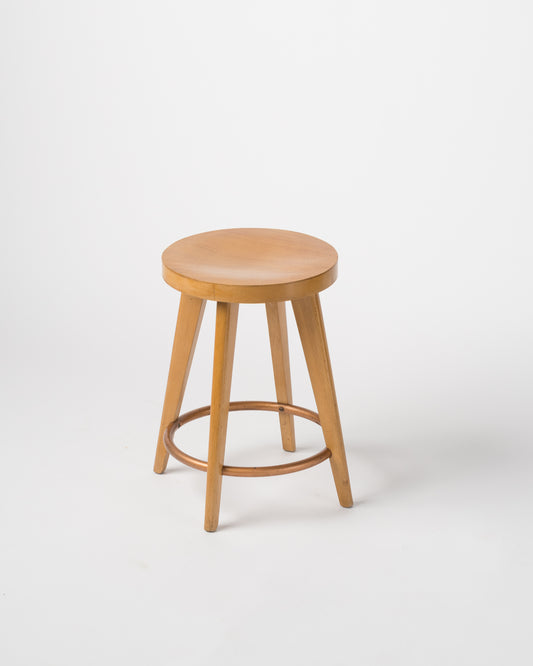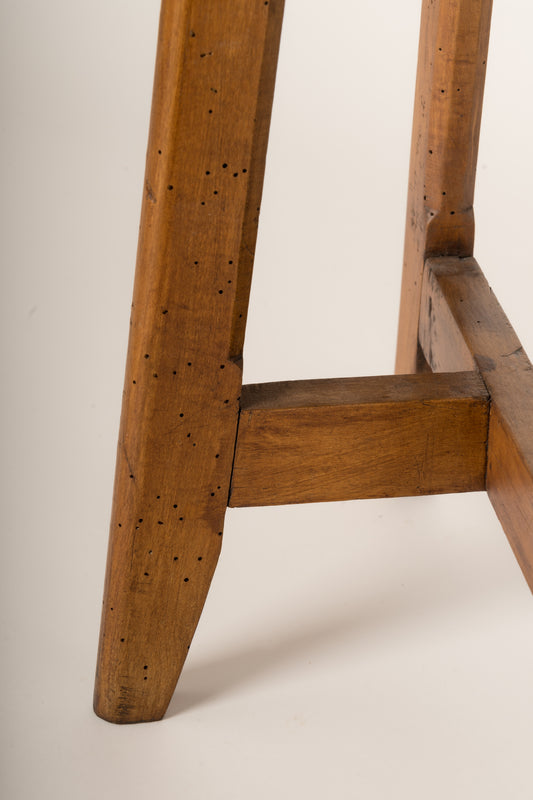 Minimalist Tinted Oak Studio Stool - France 1950s