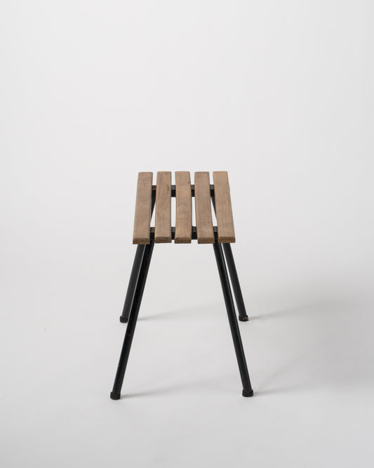 Brutalist Iron and Wood Slats Stools, France, 1970s