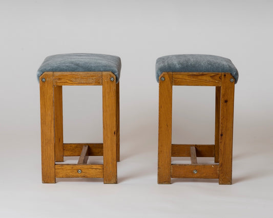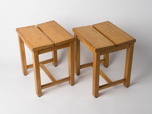 Pair of Minimalist Pinewood Stools, France, 1970s