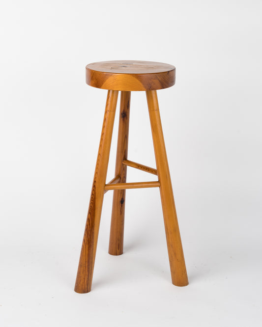 Graphic Pine Wood Bar Stool in the Style of Perriand, France, 1970's