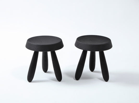 Deep Charcoal Burnt Oak Tripod Stool by Douglas Mont for Facto Atelier Paris