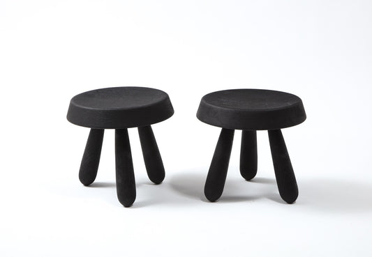 Petite Charcoal Burnt Oak Tripod Stool by Douglas Mont for Facto Atelier, Paris