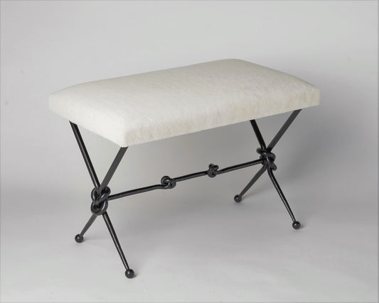 Lacquered Intricate Wrought Iron Bench with White Frey Mohair Top, France, 1950