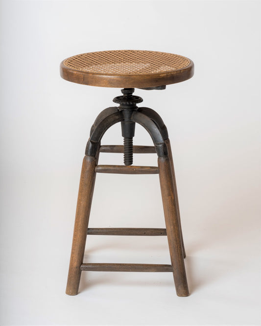 Art Deco Wood, Iron and Caning Adjustable Stool by Thonet, Austria, 1930s