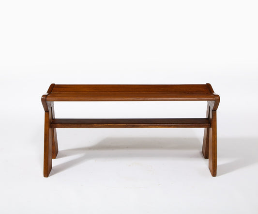 French Reconstruction Era Solid Oak Compact Bench, France, 1940s