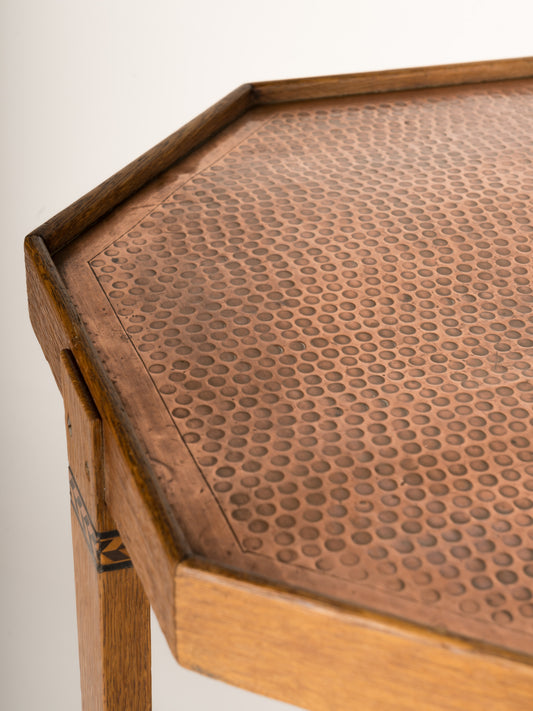 Oak and Copper Viennese Secession Oak Side Table, Austria 1910's