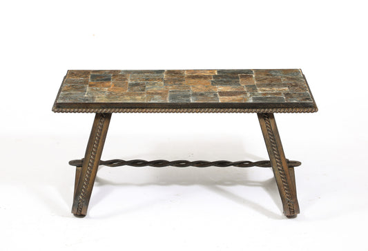 Ferronnerie & Slate Slate Mosaic Coffee Table - France 1970's