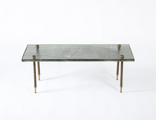 Saint Gobain Glass and Brass Feet Coffee Table Attibuted Maison Ramsay, France
