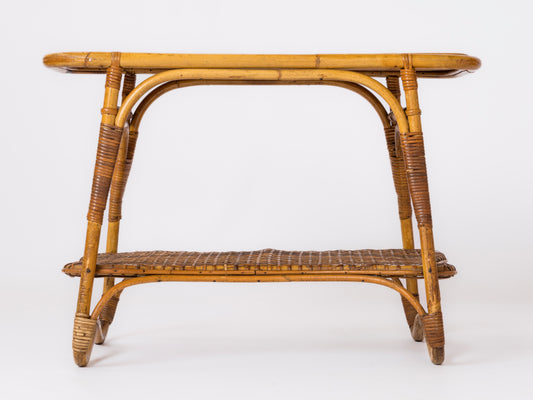 "Forme Libre" Rattan and Black Laminate Coffee or Side Table - France 1950's