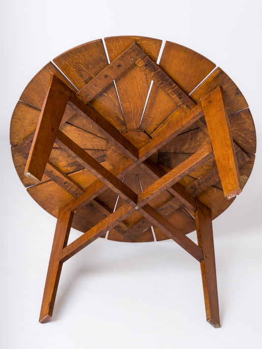 Daisy Shaped Oak Slats Round Coffee Table - France 1950's