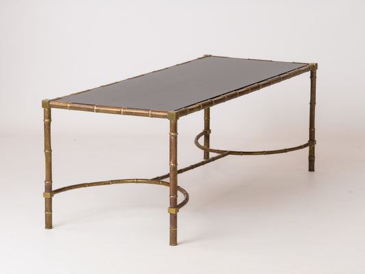Faux Bamboo Brass & Lacquered Wood Top Coffee Table - France 1960's $4,140