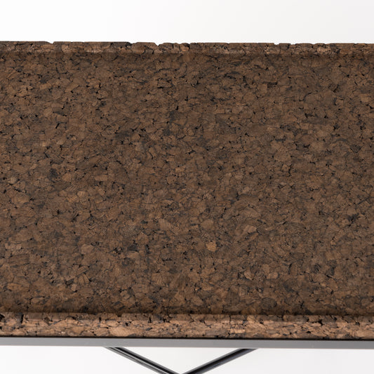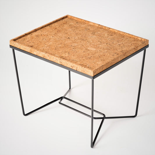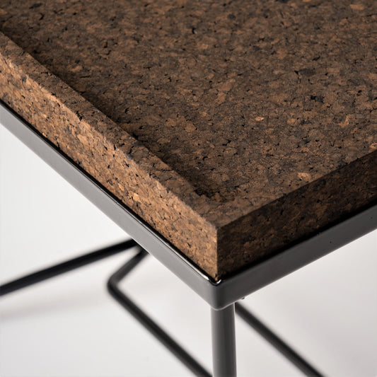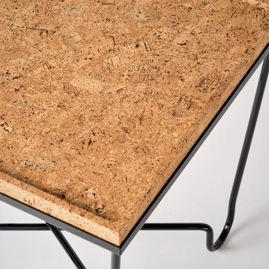 "Aronde" Black Lacquered Steel Side Table with Natural Cork Top