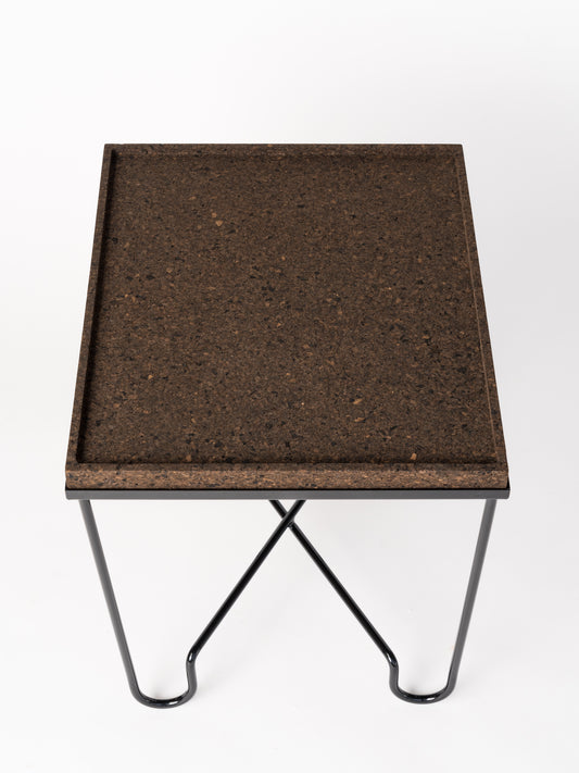 "Aronde" Black Lacquered Steel Side Table with Lower Density Cork Top