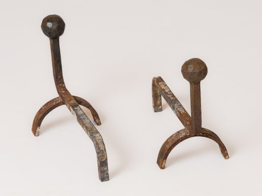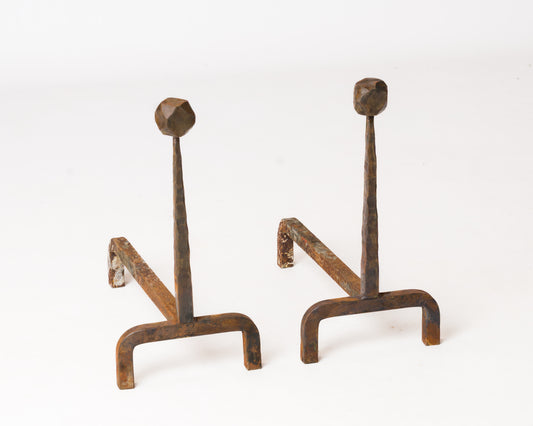 Brutalist "Martelé" Wrought Iron Andirons - France 1970's