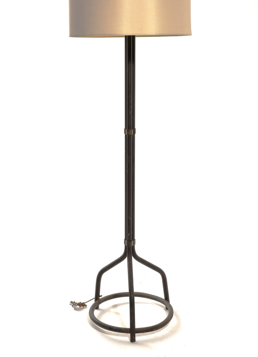 Tripod Patinated Steel and Brass Modernist Floor Lamp - France 1960s