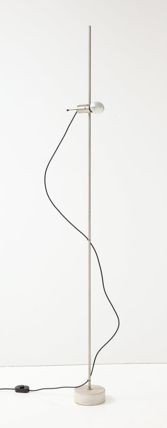 Stainless Steel & Concrete Base Floor Lamp by Tito Agnoli f. Oluce - Italy 1960s