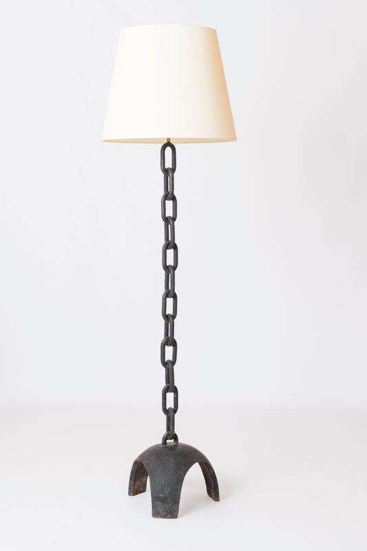 Brutalist Cast Iron & Marine Chain Links Floor Lamp - France 1970's