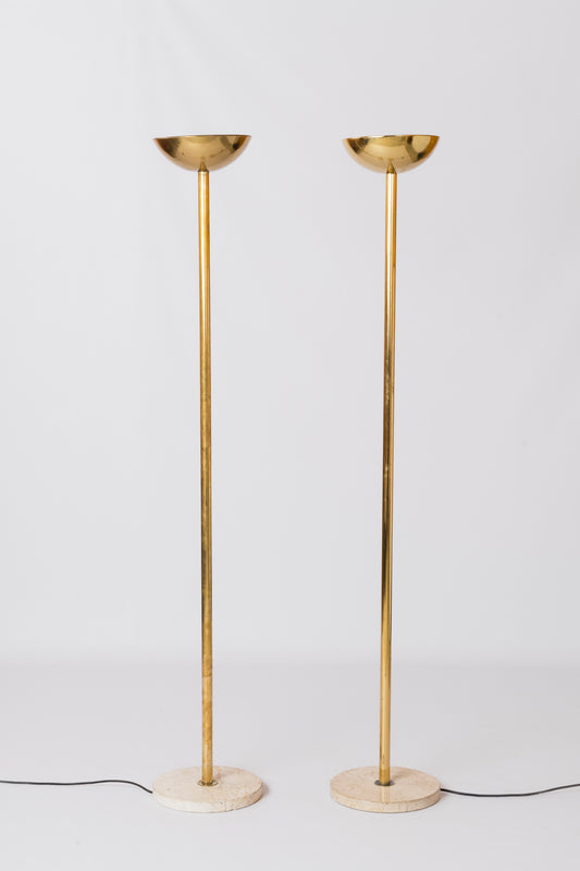 Pair of Travertine & Brass Floor Lamps in the style of J. Grange - Italy 1980s