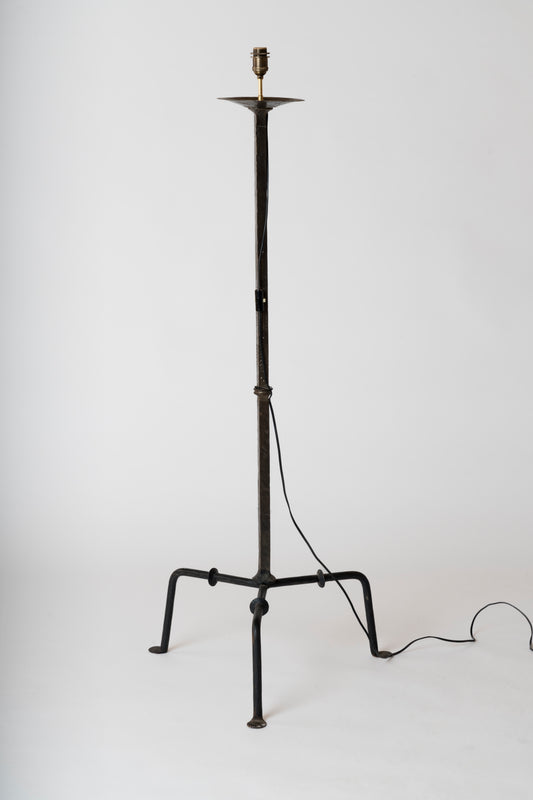 Brutalist Etched Wrought Iron "Ferronerie" Tripod Floor Lamp, France, 1960s