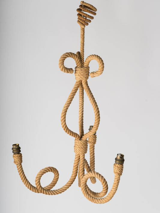 Three Arms Rope Chandelier by Audoux Minnet, France 1960's