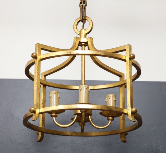 Rare "Fer Battu" Gold Leaf Chandelier by Henri Pouenat, France, 1960s