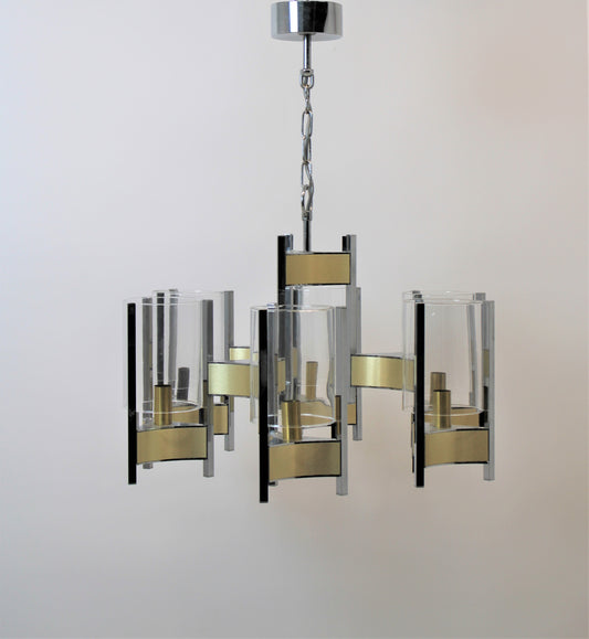 Gaetano Sciolari Six-Light Glass Hurricane Chandelier, Italy, 1970s