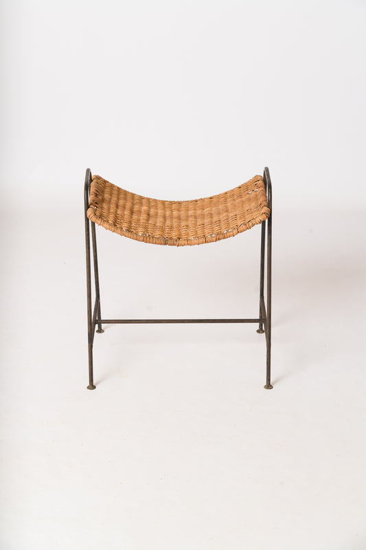 "Ferotin" Wicker and Steel Stool att. Raoul Guys - France 1950's