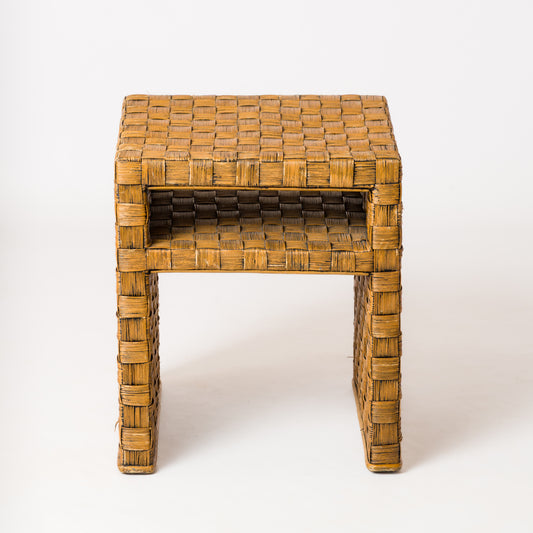 Braided Wicker Square Side Table in the Style of Audoux Minnet - France 1960s