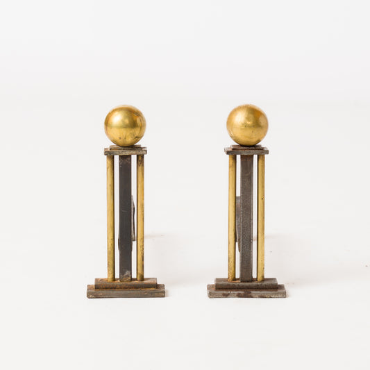 Steel & Bronze Modernist Andirons in the Style of Adnet - France 1940s