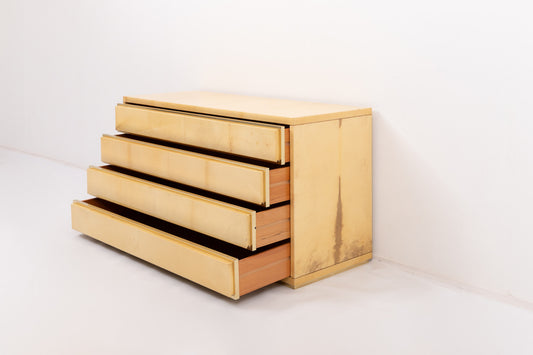 Crème Vellum Chest of Drawers w. Brass Details by Aldo Tura - Italy 1970s