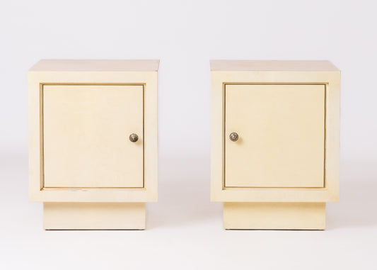 Creme Velum & Fruitwood Night Stands in the manner of JM Frank - France 1950's
