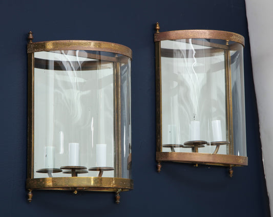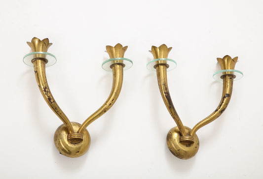 Pair of Brass and Glass Modernist Sconces Att. Emilio Lancia - Italy 1950s