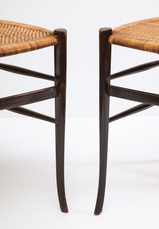 Asian Accents 6 Black Lacquer Wood Canned Chairs by Montina, Italy, 1970's