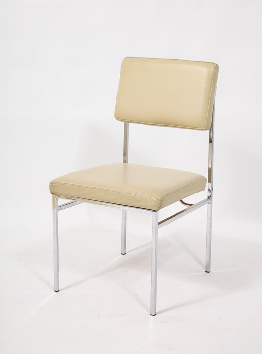 6 Chrome and Cream Leather P60 Chairs by Philippon & Lecoq, France, 1960's
