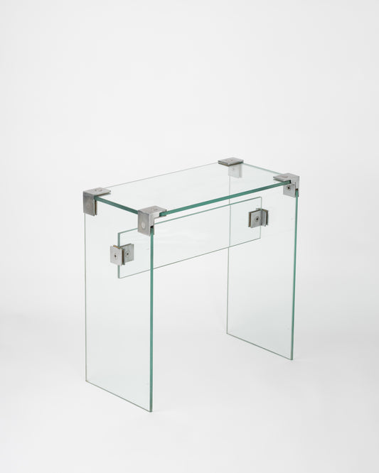 Modernist Glass Side Table w. Steel Links by Jacques Dumond, France, 1960's