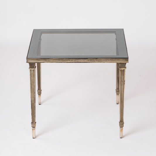 Exceptional Silver Plated Bronze Guilloché Side Table Att. Maison Charles - France 1970s