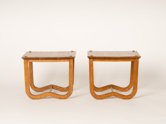 Pair of Square Oak Side Table with Wavy Legs - France 1950's