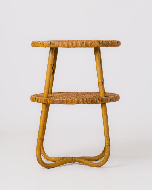 Two Tiered Rattan Gueridon w. Crossed Legs - France 1960's