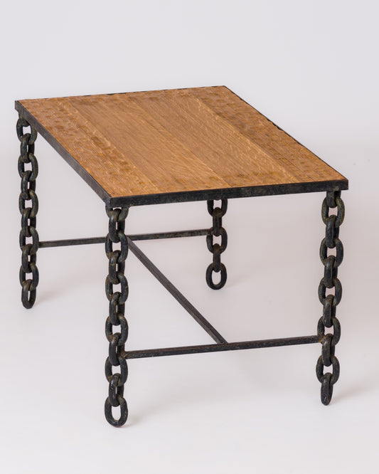 Brutalist Welded Marine Side Table w. Solid Gouge Cut Oak Top - France 1970's