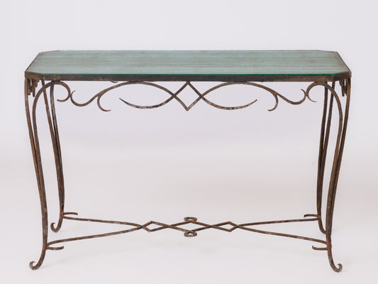 Art Deco Wrought Iron & Saint Gobain Glass att. René Prou - France 1930's