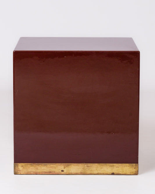 Signed Burgundy Lacquer & Brass End Table by Jean Claude Mahey - France 1970's