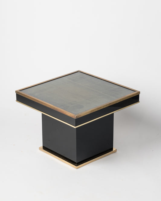 Black Laminate Brass & Glass Side Table Att. JC Mahey, France, 1980s