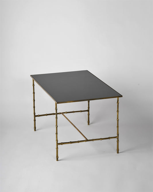 Maison Baguès Faux Bamboo Bronze Side Table w. Black Opaline Top, France 1960s