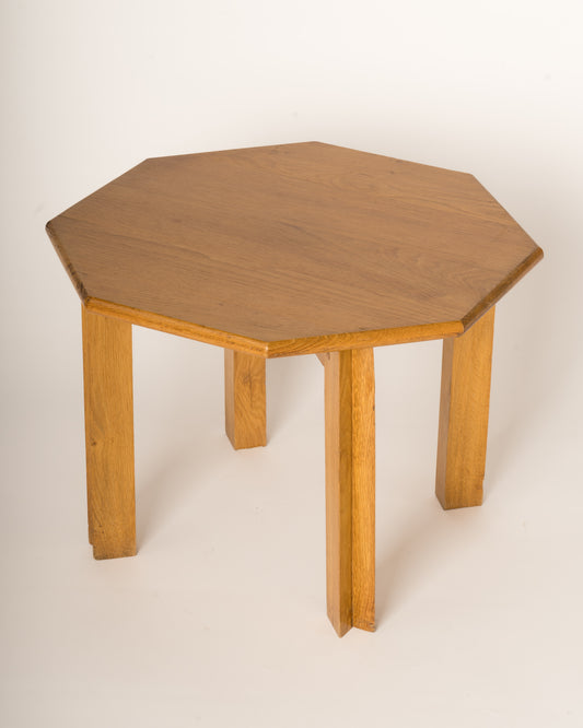 Minimalist Solid Oak Side Table by Guillerme & Chambron, France 1970s