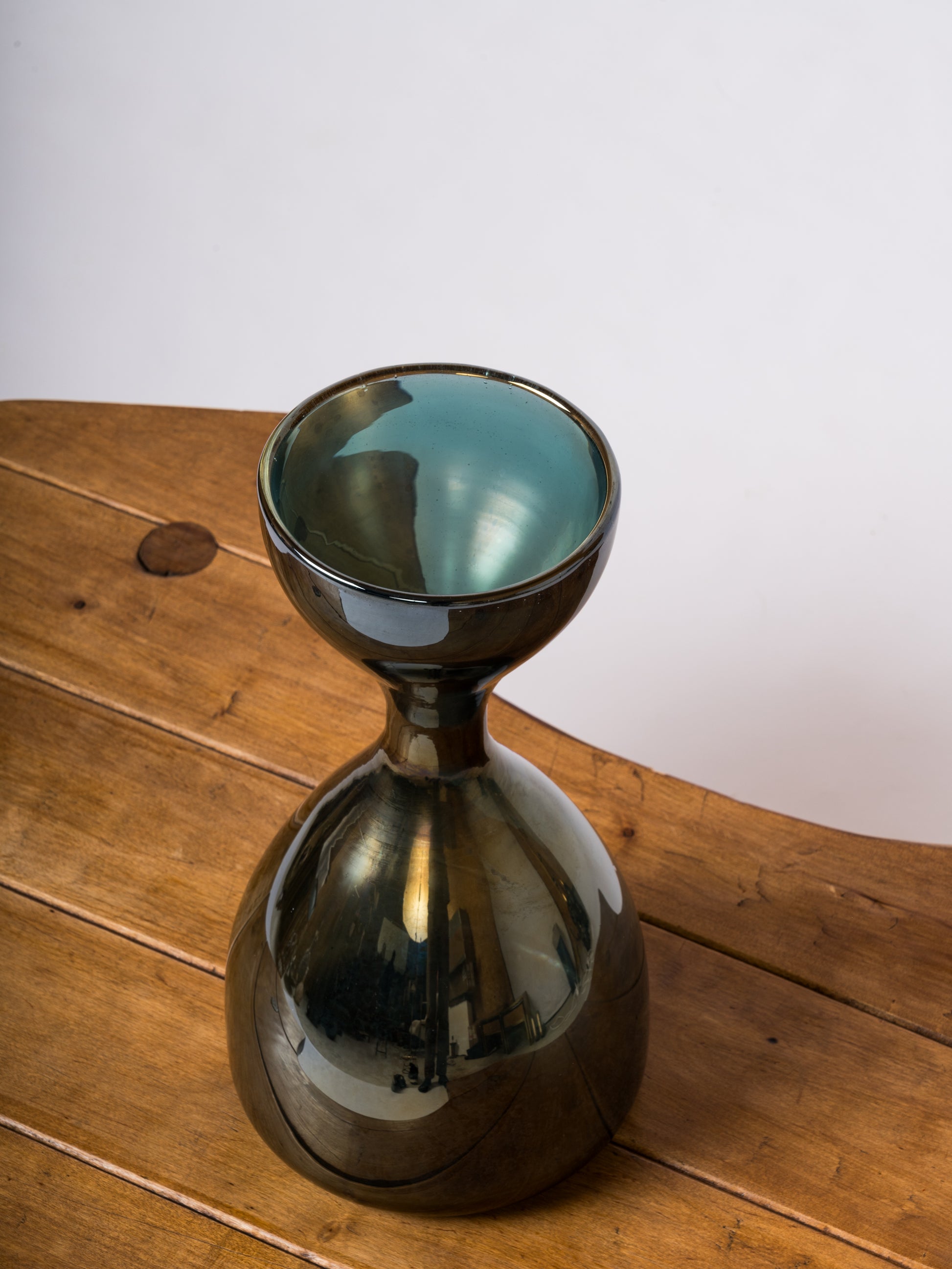 Blue "Eglomisé" Decorative Hourglass Shaped Vase - France 1970's